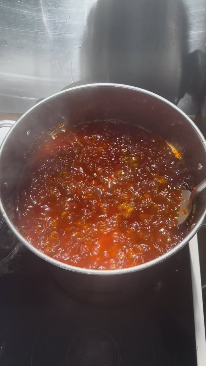 Lentement mijotée à la main selon une méthode ancestrale, elle développe une texture onctueuse et une intensité aromatique rare : le piquant vif des piments s’équilibre avec la rondeur du soja et la subtilité des graines de sésame grillées.